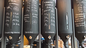 Schon das Reinkommen ins elbgold ist für Kaffeefans eine Offenbarung. An den Wänden große Behälter für unendlich viele Kilogram verschiedenster Kaffeebohnen. Costa Rica, südamerikanische Bohnen, ein paar Kaffeebohnen aus Afrika.